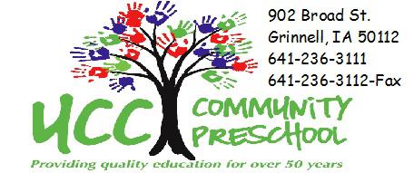 In general, the UCC preschool program follows the Grinnell-Newburg School District calendar regarding holidays and closures. If you have a child in the program, please check your email for information regarding closures or delays.